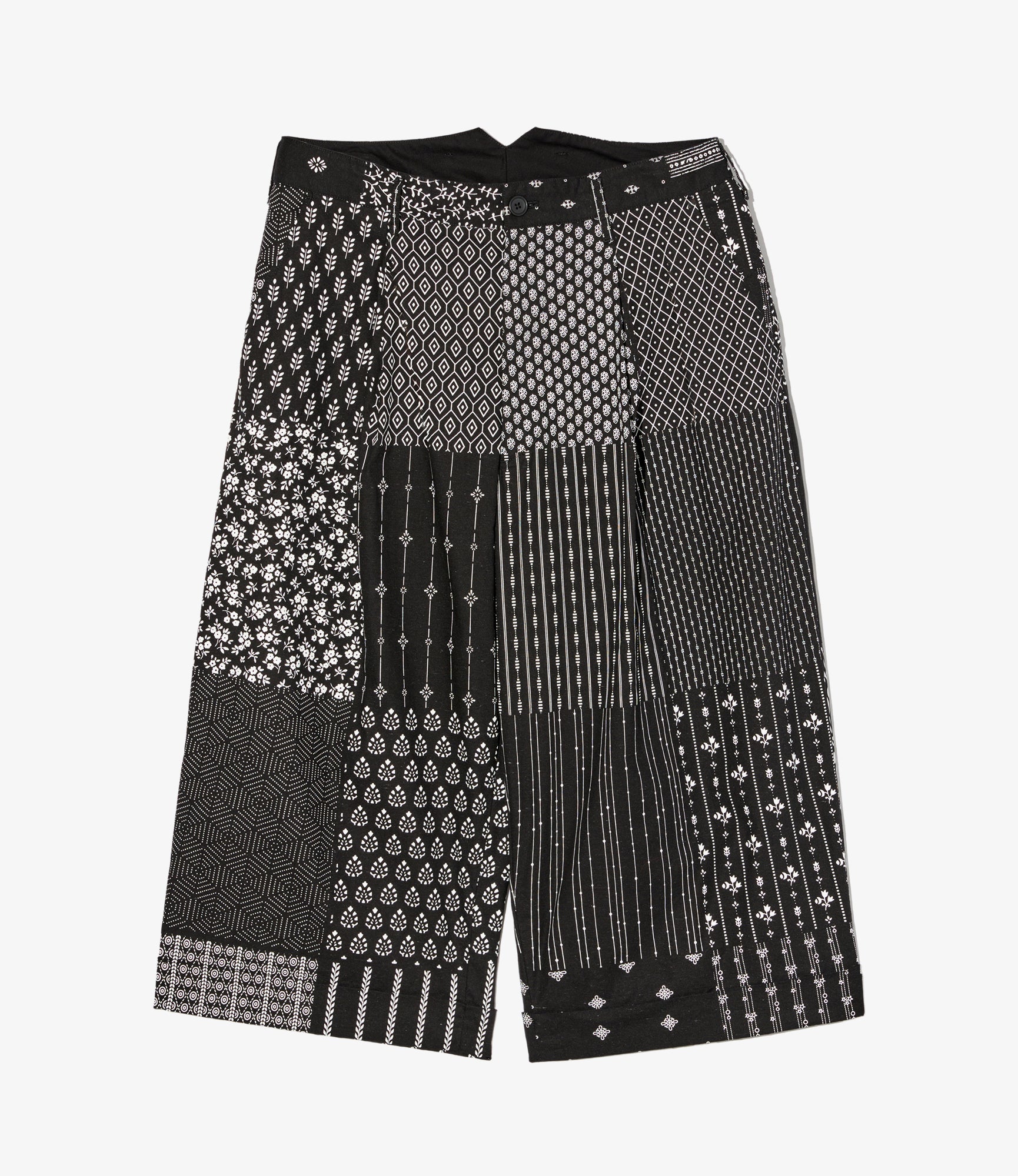WP 3/4 Pant - Black/White Cotton Patchwork Print