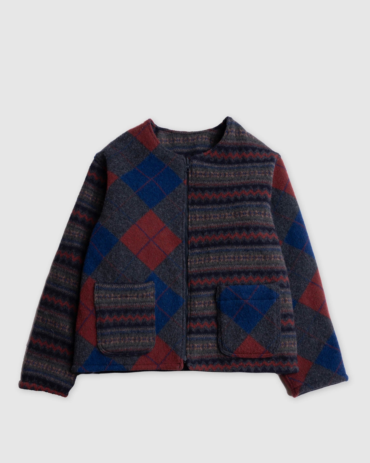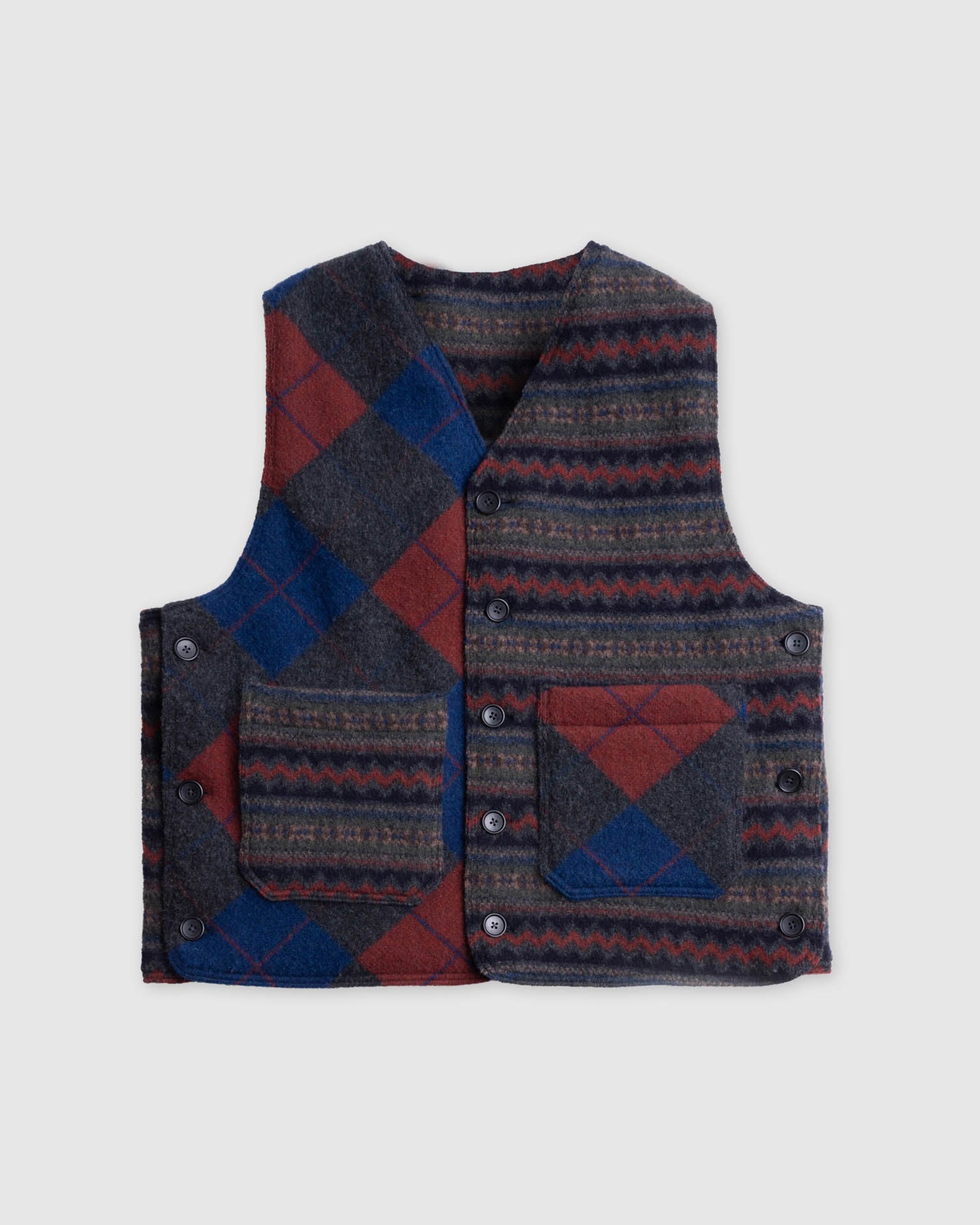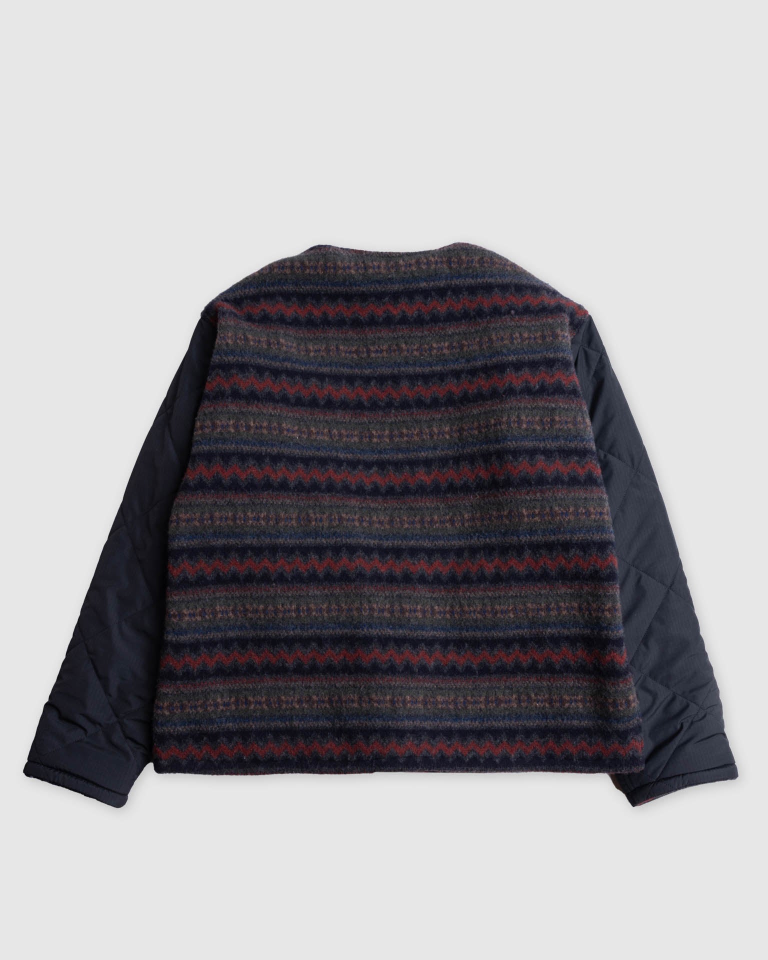 For this project, the two brands spent over two years developing custom wool knits produced in both Scotland and Belgium. Select styles combine these textiles with nylon ripstop, resulting in fully reversible constructions across the cardigan and vest.