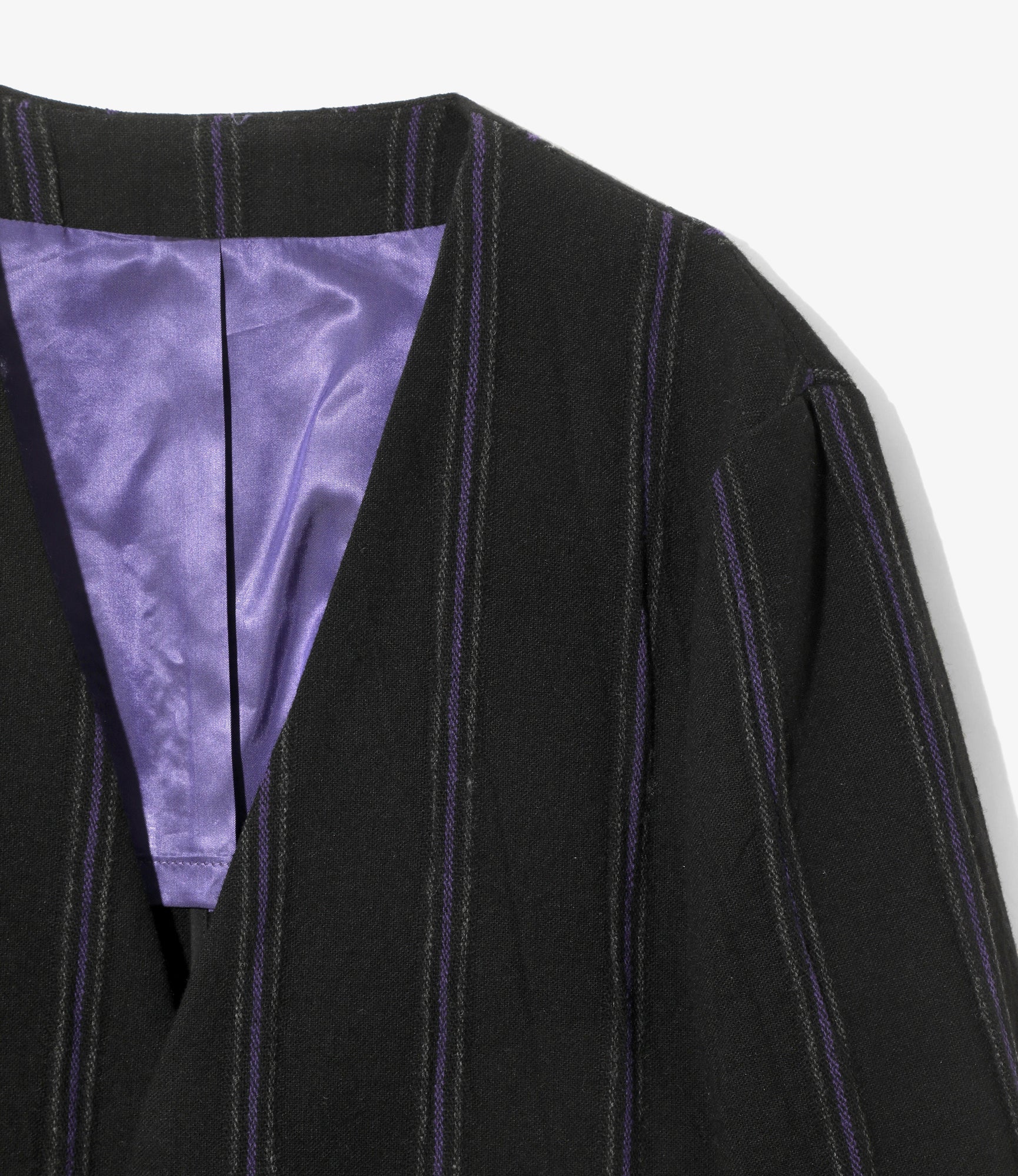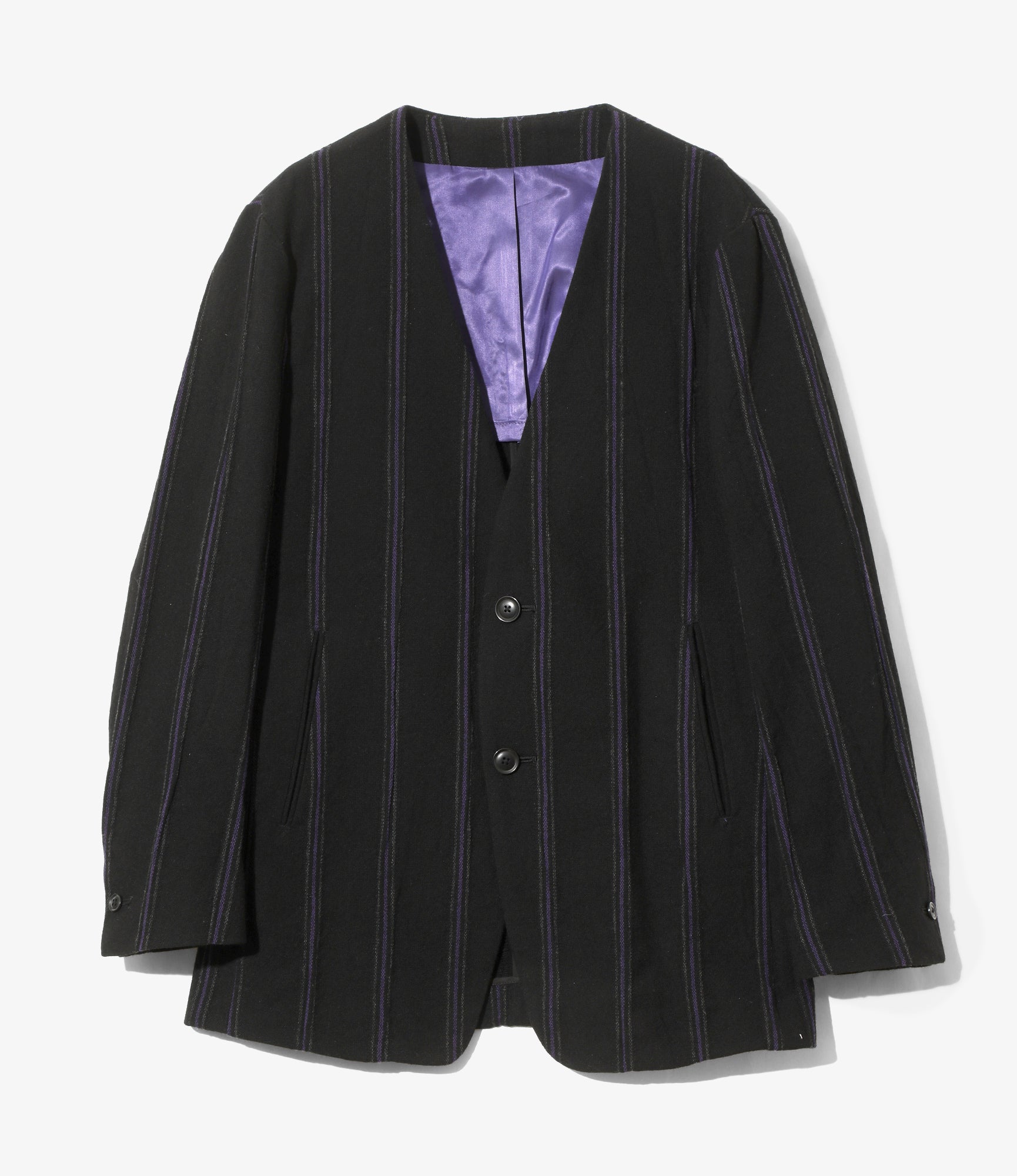 Women's Collarless Jacket - Black/Purple - Stripe Tweed