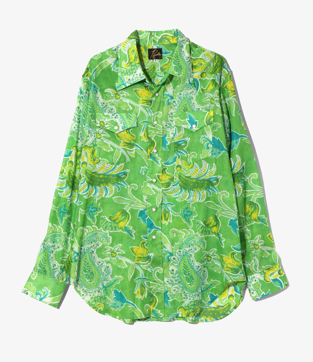 Western Shirt - Green - Printed Cotton Lawn / Floral