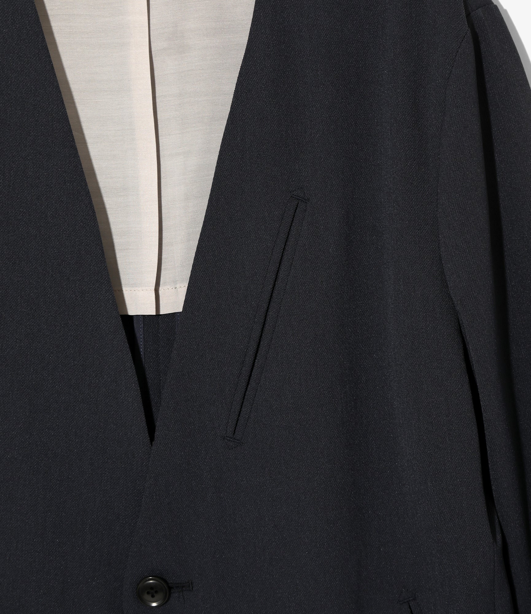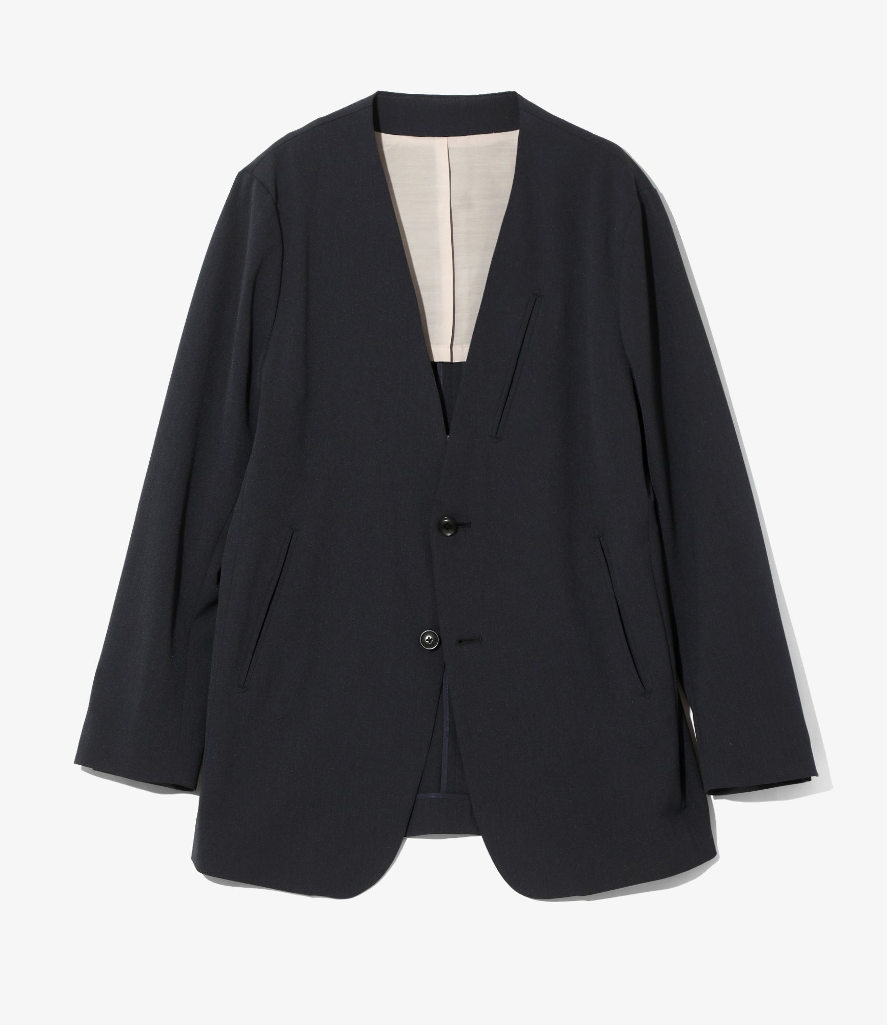 No Collar 2B Jacket - Navy - Poly Twill