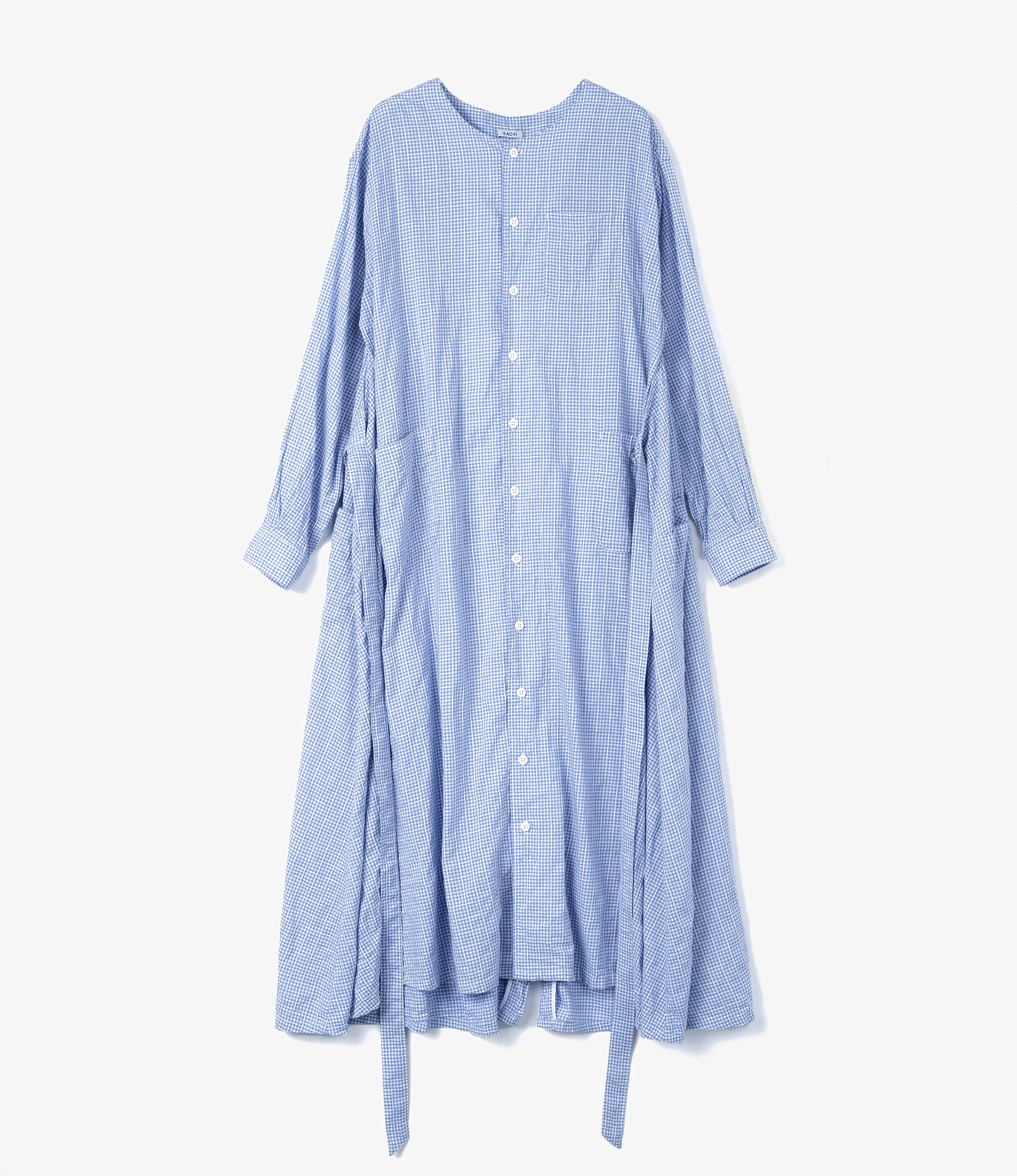 Women's Tie Dress - Lt. Blue Windowpane Gingham