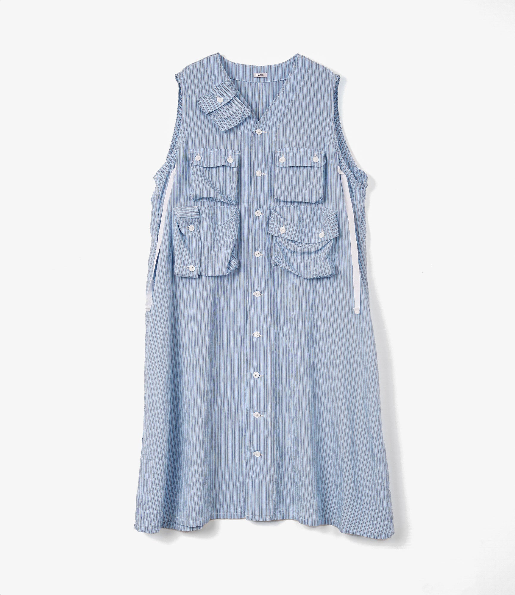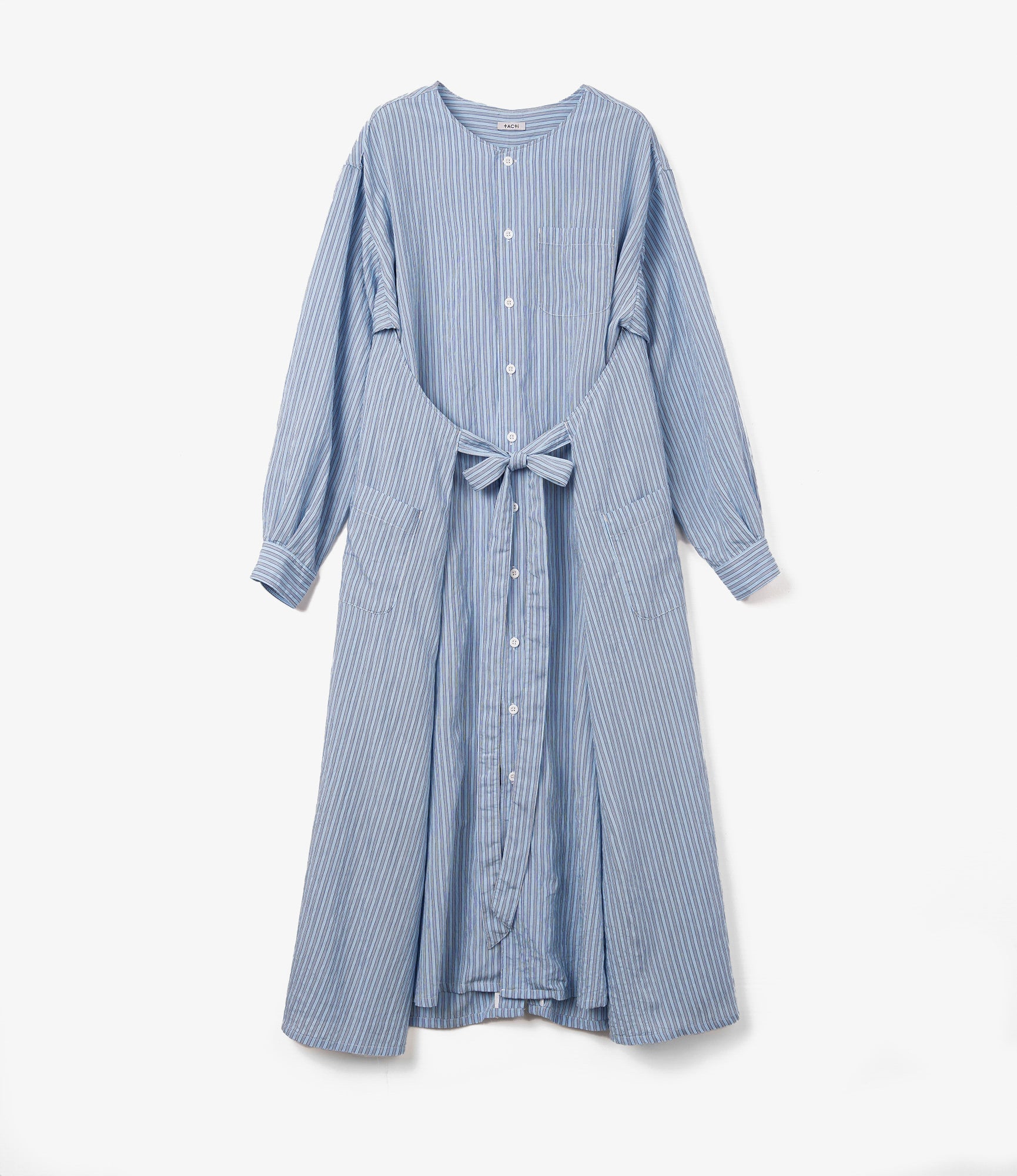 Women's Tie Dress - Blue Narrow Stripe