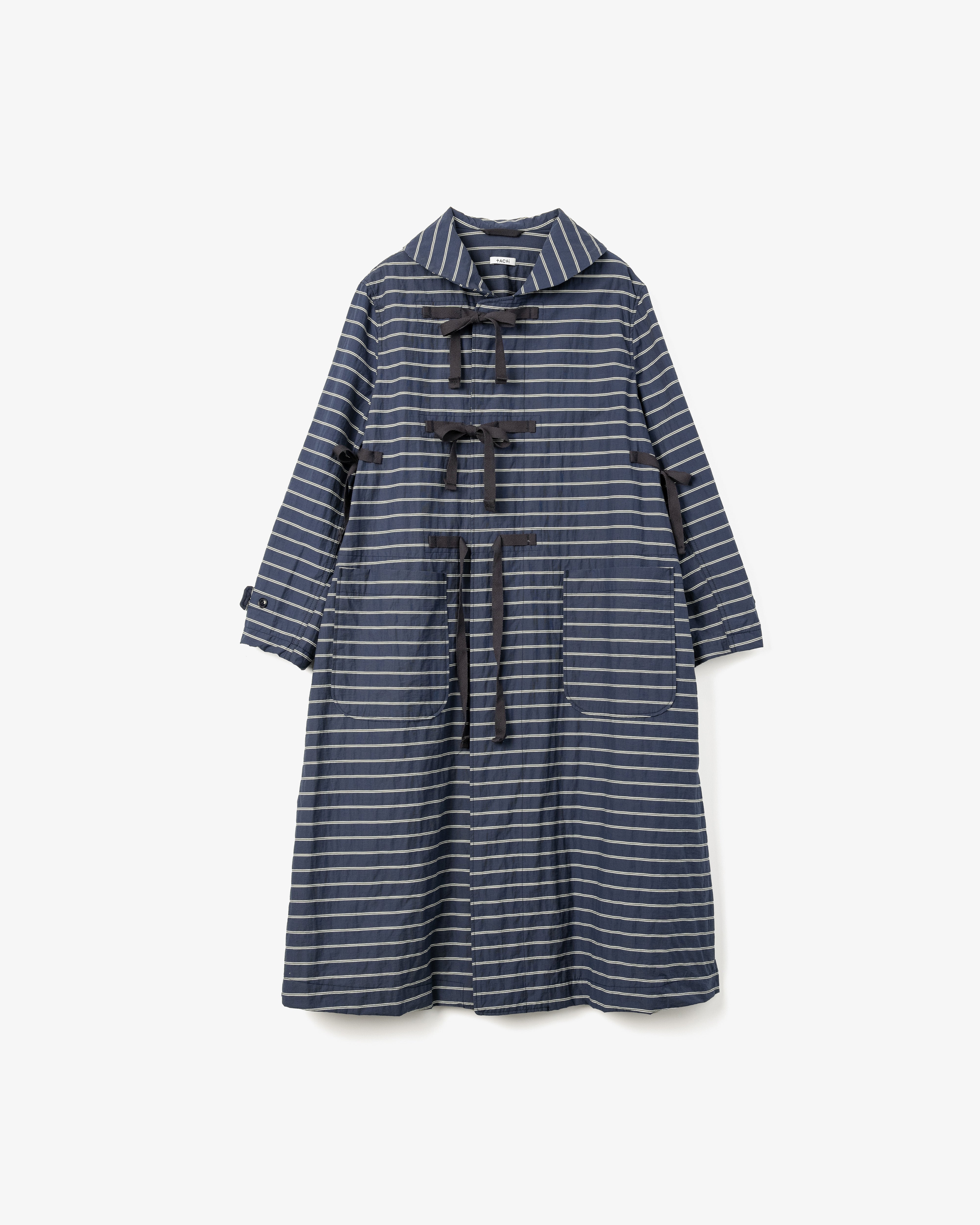 Women's Duffle Dress - Navy Narrow Stripe Viscose