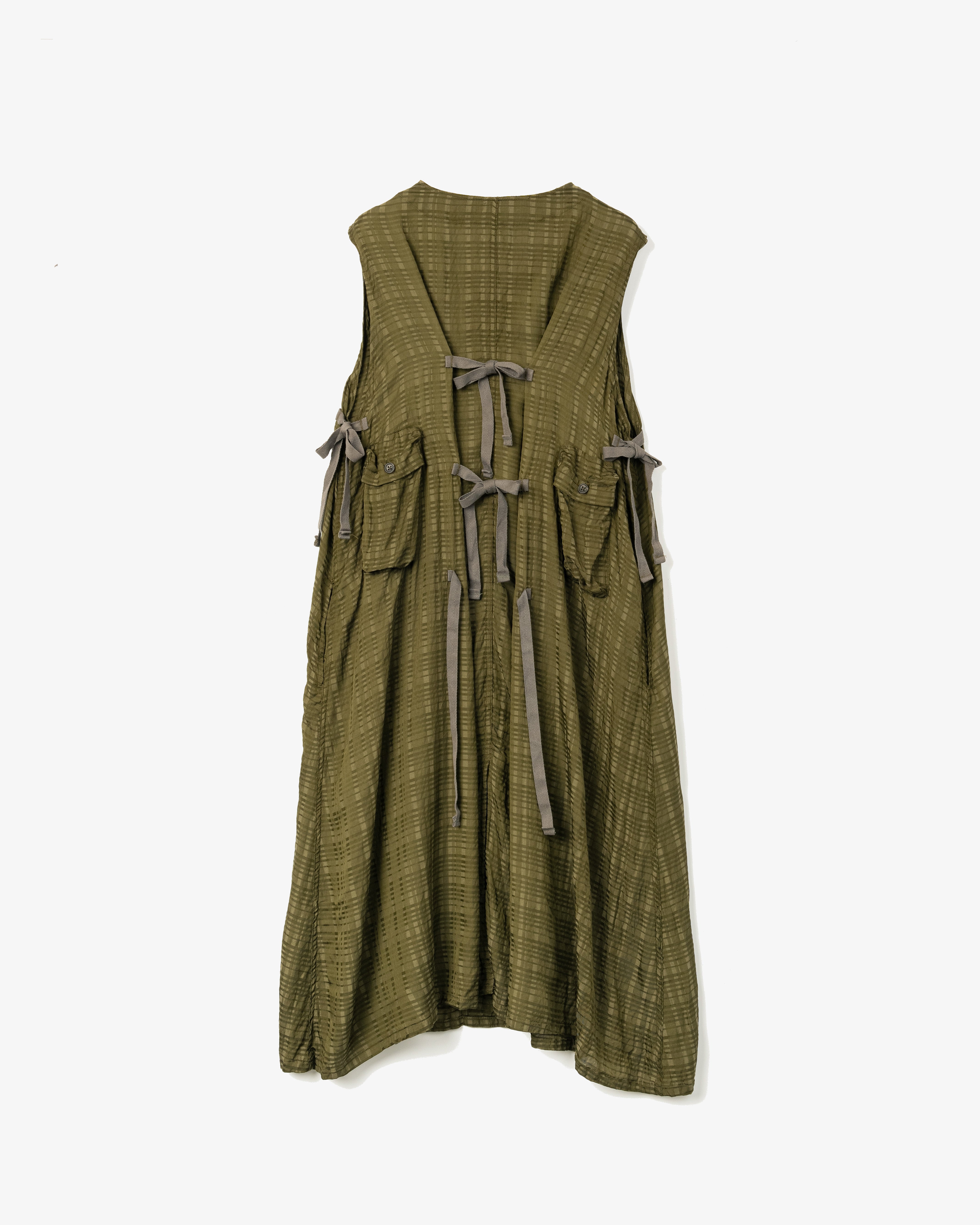 Women's Tie Dress - Olive Sheer Cupro