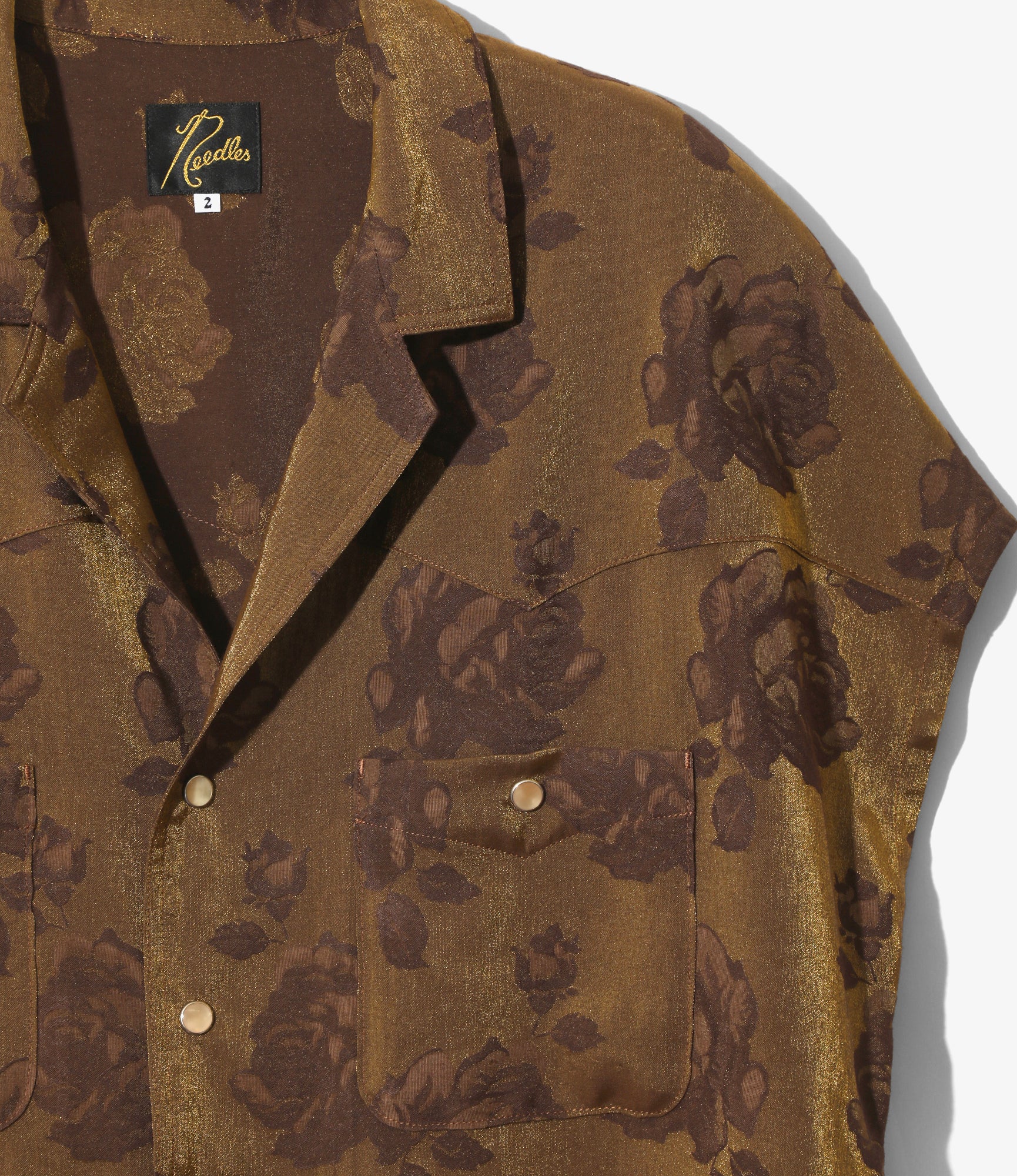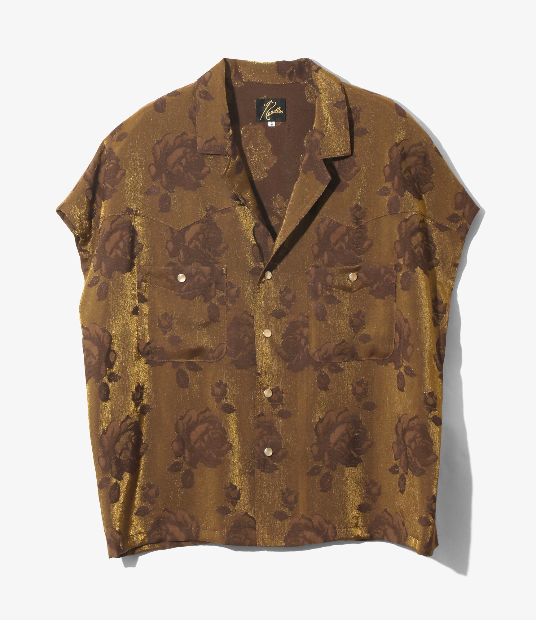Women's Cowboy French Sleeve Blouse - Brown - Rose Jacquard